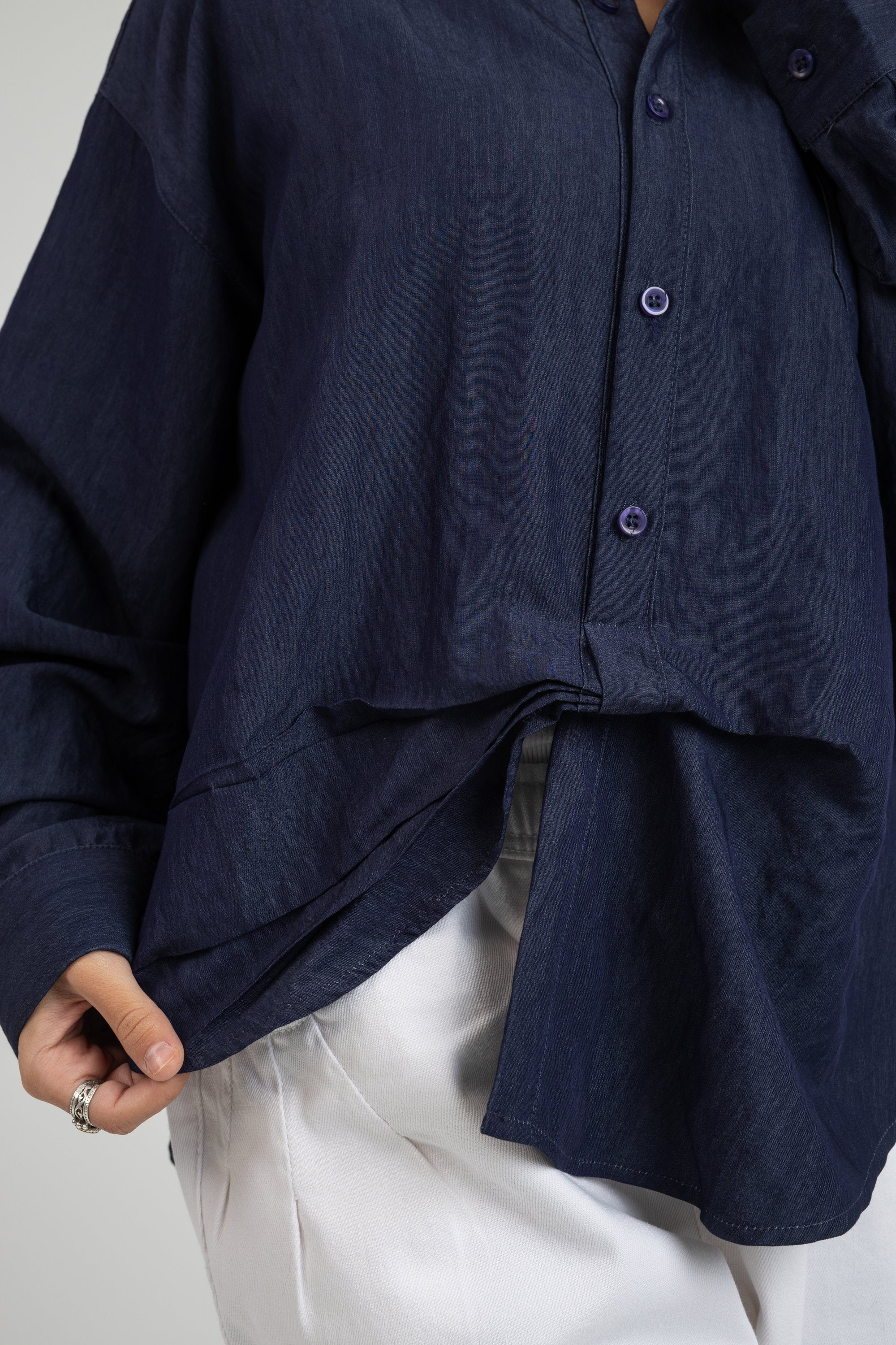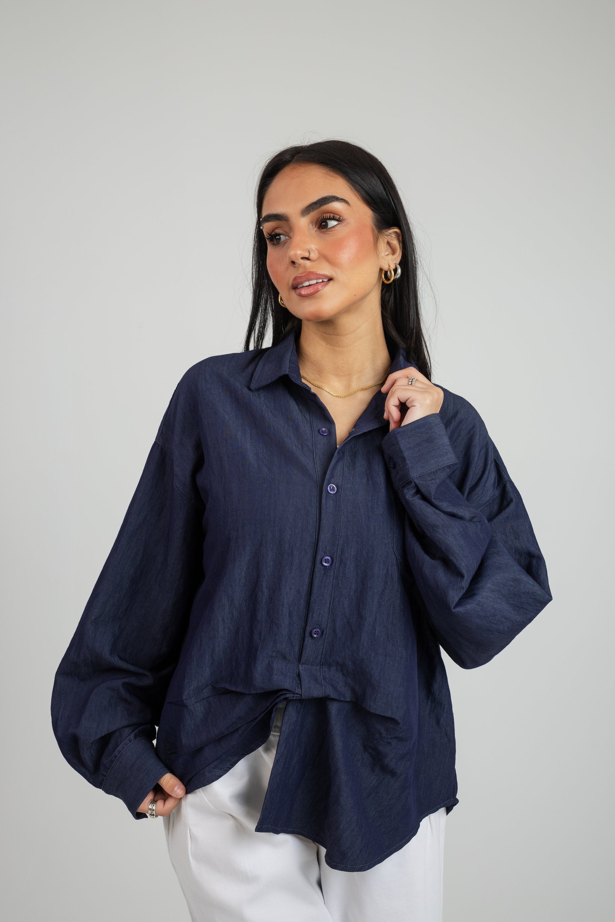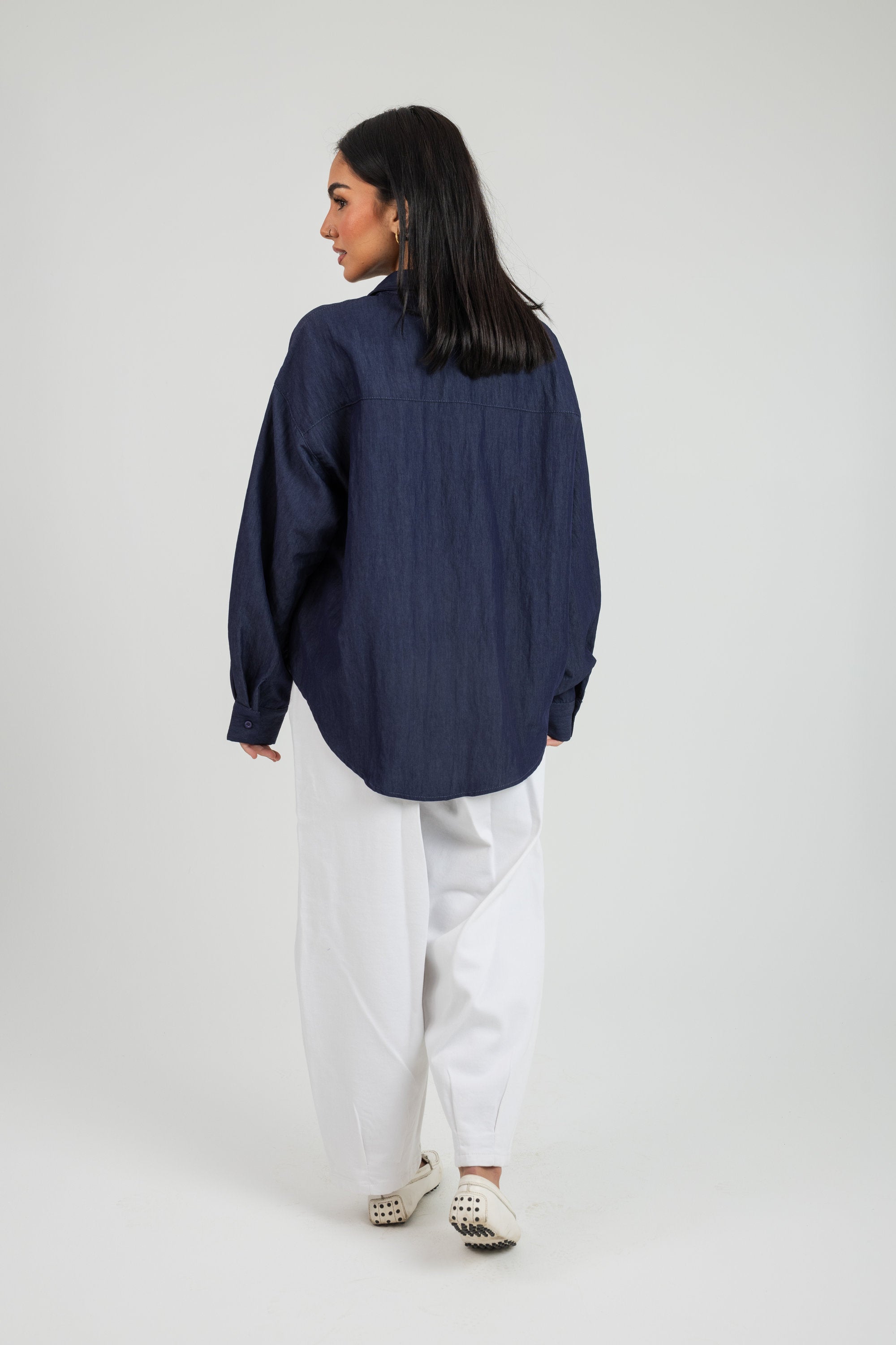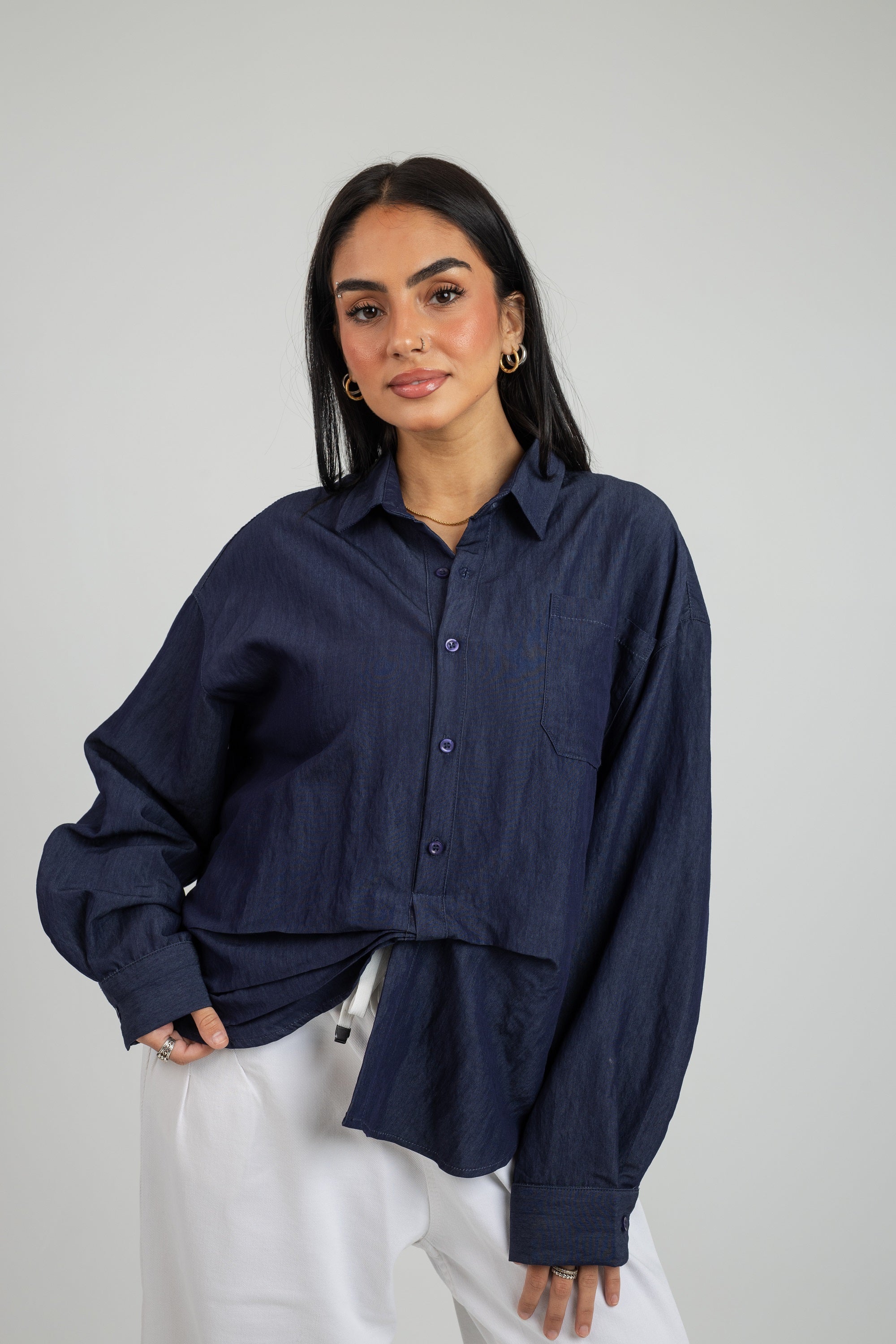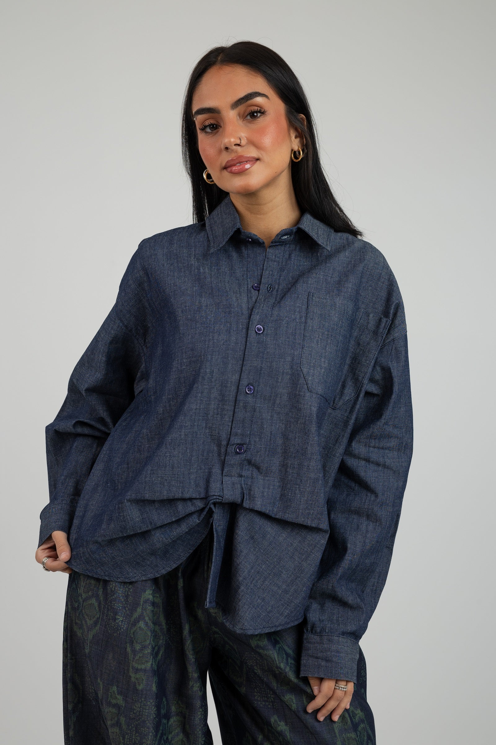 The Muse Shirt is a versatile denim button-down featuring a modern, relaxed silhouette. It is designed for both comfort and style, working perfectly as an effortless standalone top or a lightweight layer for any occasion.