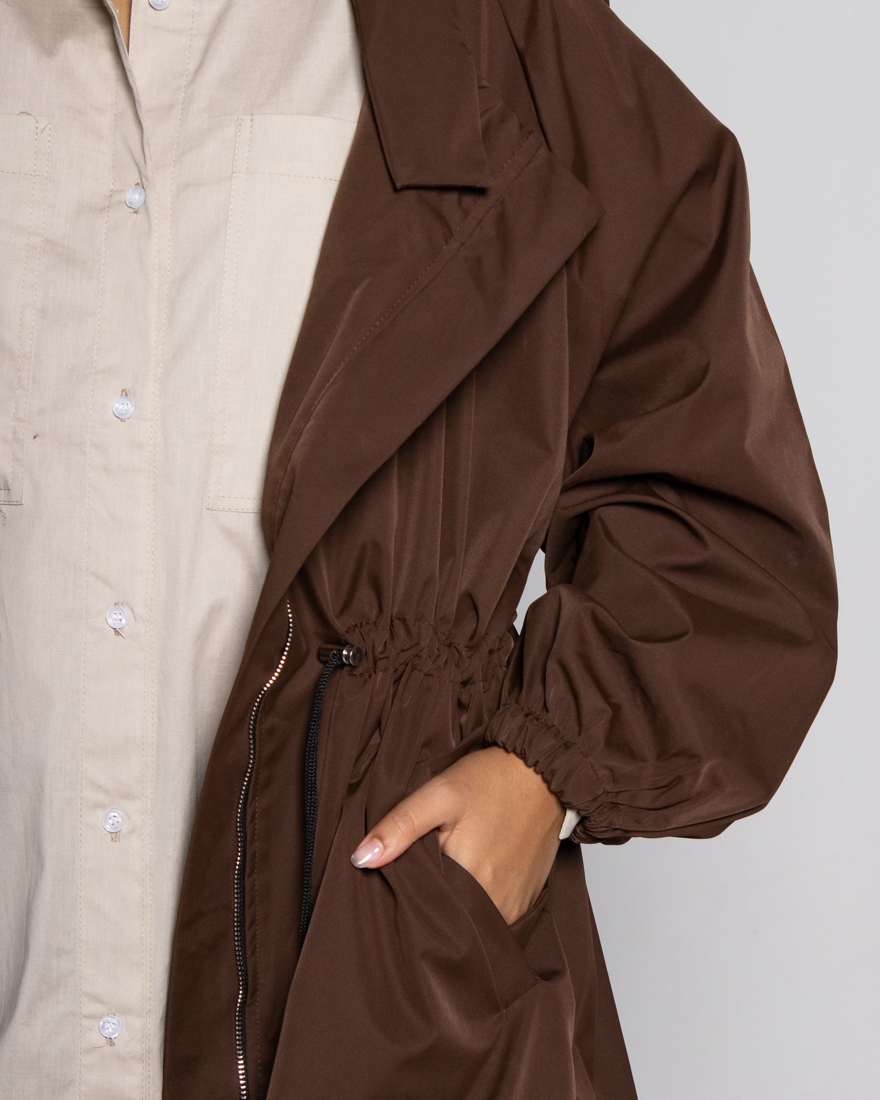 The Ranchy Coat is a waterproof trench coat made for effortless style and comfort. With its sleek design and durable fabric, it keeps you dry while adding a refined touch to any outfit.